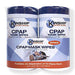 Toallitas de limpieza para mascarillas CPAP (140 unidades, 2 paquetes con 70 piezas cada uno) Práctica limpieza libre de pelusas y olores. Parte superior de fácil apertura, sin látex, elimina la suciedad y la grasa de tu máscara CPAP. Nuestra fórmula es segura para ti y para tu equipo y no dejará ningún residuo.